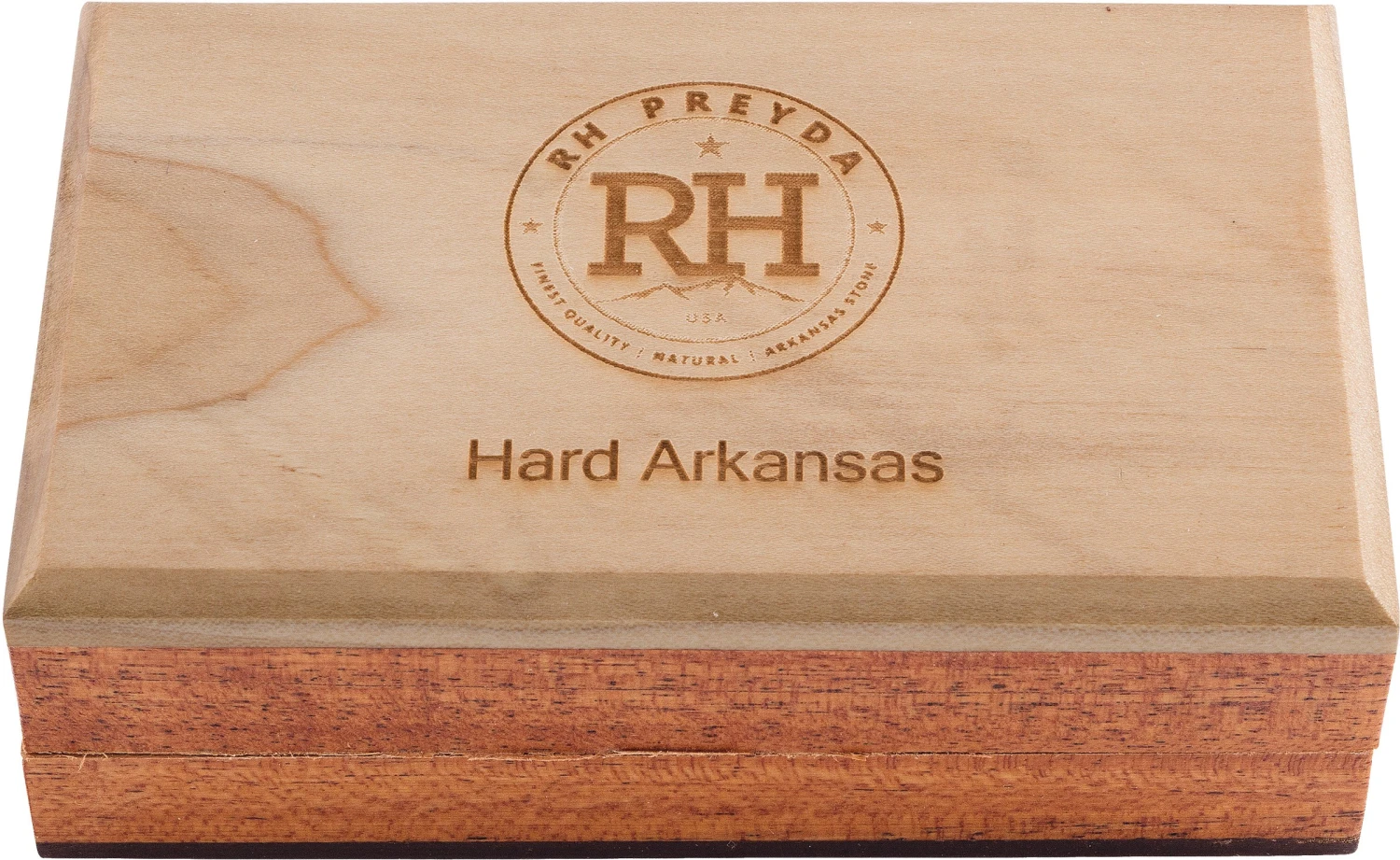 Denne 100% naturlige Arkansas slibesten er fremstillet af det amerikanske firma RH Preyda, som om nogen ved hvad det kræver af rette materialer for at slibe øksen eller kniven op til maksimal skarphed.