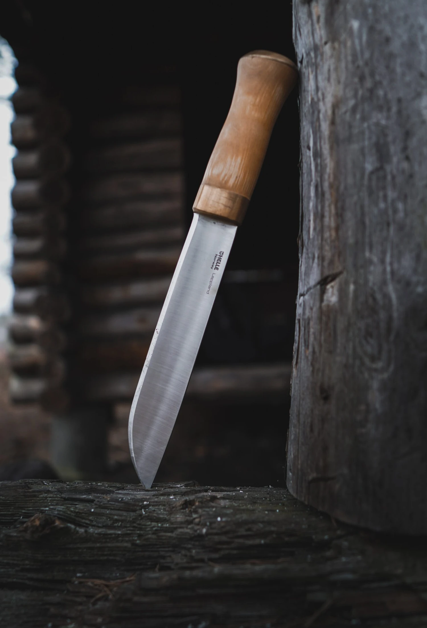 Denne Helle Lappland Classic Knife, som blev designet tilbage i 1979, er det samiske folks allround lejrkniv. Størrelsesmæssigt vil nogle måske hævde, at det nærmest er en minimachete, for den er med sin længde på 33,9 cm. da også ganske stor i hånden. Men det er altså en type kniv, som samerne bruger til mange forskellige former for friluftsliv.