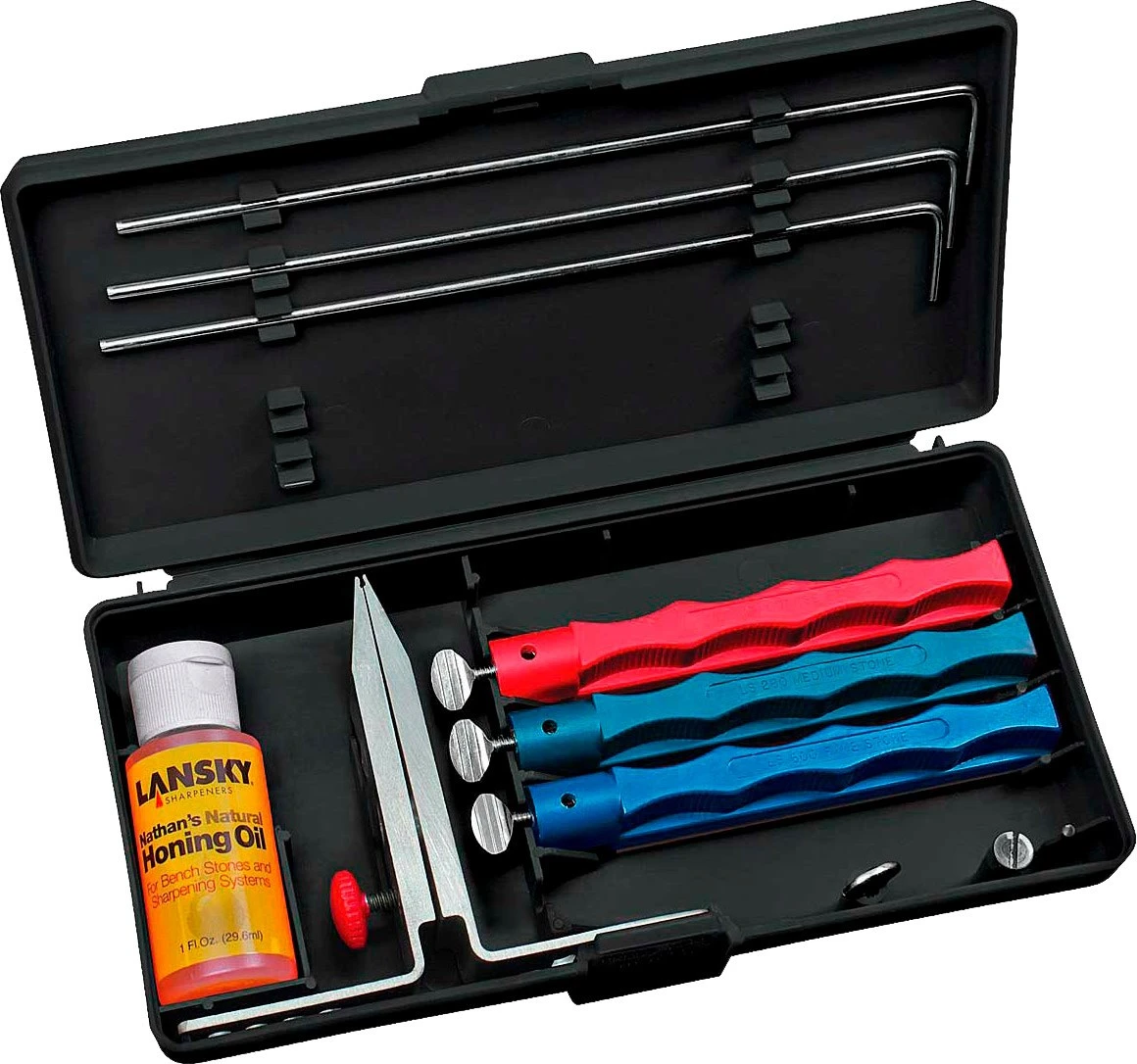Lansky Standard Controlled-Angle Sharpening System består af tre forskellige slibesten, nemlig en grov (korn 120), en medium (korn 280) og en fin (korn 600), ligesom den medfølgende slibeolie vil sikre det bedste resultat.