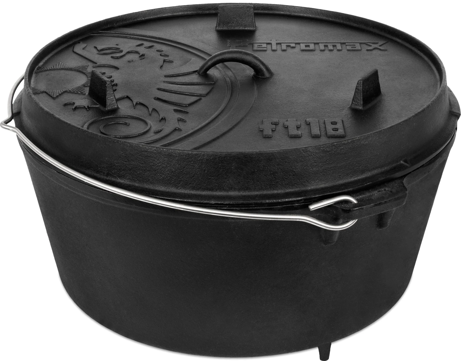 Takket være de fantastiske kendetegn ved støbejern og overfladens særlige struktur, opbevares varmen effektivt og fordeles ensartet. Den forbehandlede overflade gør præparering unødvendig, og den robuste ‘dutch oven’ kan bruges med det samme. Udendørs bruges den i eller over åben ild eller med kul og briketter. Alle modeller fra Petromax er udstyret med både hank og kraftigt låg med forhøjet kant, som holder gløderne på plads, hvis låget dækkes med gløder. Din ‘dutch oven’ opvarmes således fra alle sider og er dermed egnet til fx bagning af brød.
