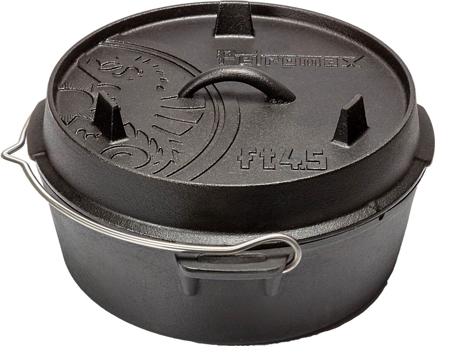 Takket være de fantastiske kendetegn ved støbejern og overfladens særlige struktur, opbevares varmen effektivt og fordeles ensartet. Den forbehandlede overflade gør præparering unødvendig, og den robuste ‘dutch oven’ kan bruges med det samme. Udendørs bruges den i eller over åben ild eller med kul og briketter. Alle modeller fra Petromax er udstyret med både hank og kraftigt låg med forhøjet kant, som holder gløderne på plads, hvis låget dækkes med gløder. Din ‘dutch oven’ opvarmes således fra alle sider og er dermed egnet til fx bagning af brød.