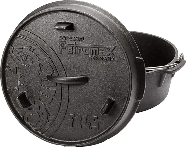 Takket være de fantastiske kendetegn ved støbejern og overfladens særlige struktur, opbevares varmen effektivt og fordeles ensartet. Den forbehandlede overflade gør præparering unødvendig, og den robuste ‘dutch oven’ kan bruges med det samme. Udendørs bruges den i eller over åben ild eller med kul og briketter. Alle modeller fra Petromax er udstyret med både hank og kraftigt låg med forhøjet kant, som holder gløderne på plads, hvis låget dækkes med gløder. Din ‘dutch oven’ opvarmes således fra alle sider og er dermed egnet til fx bagning af brød.