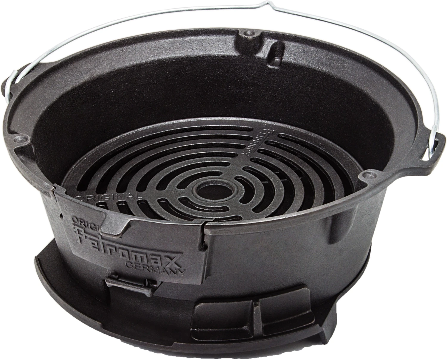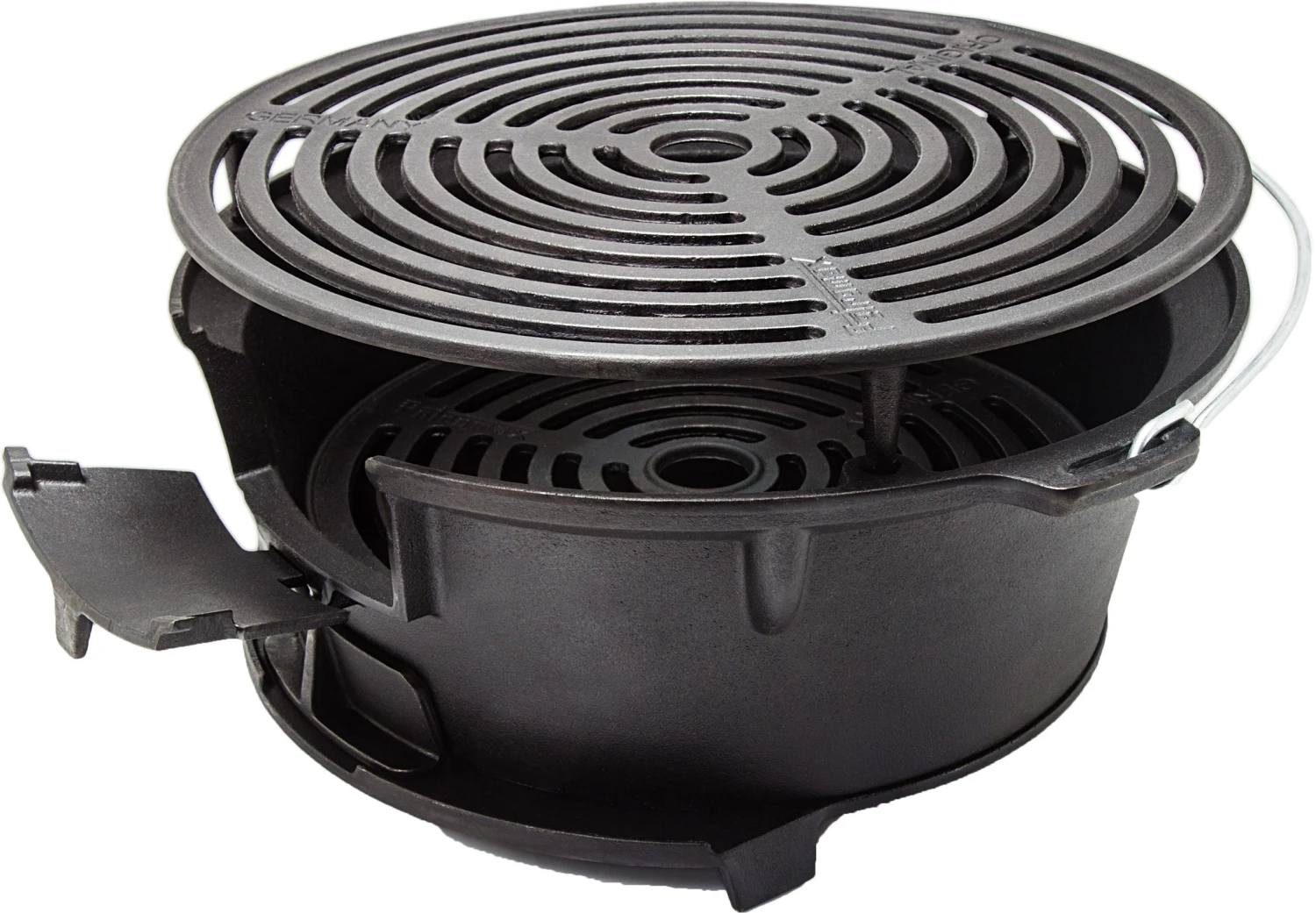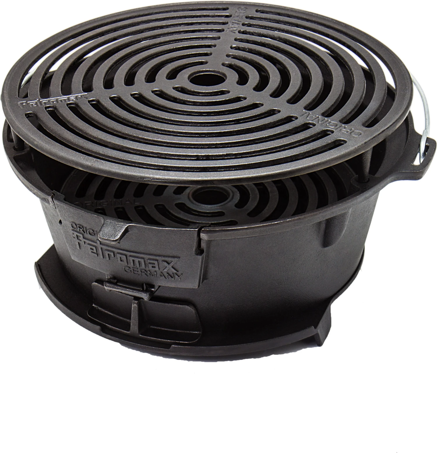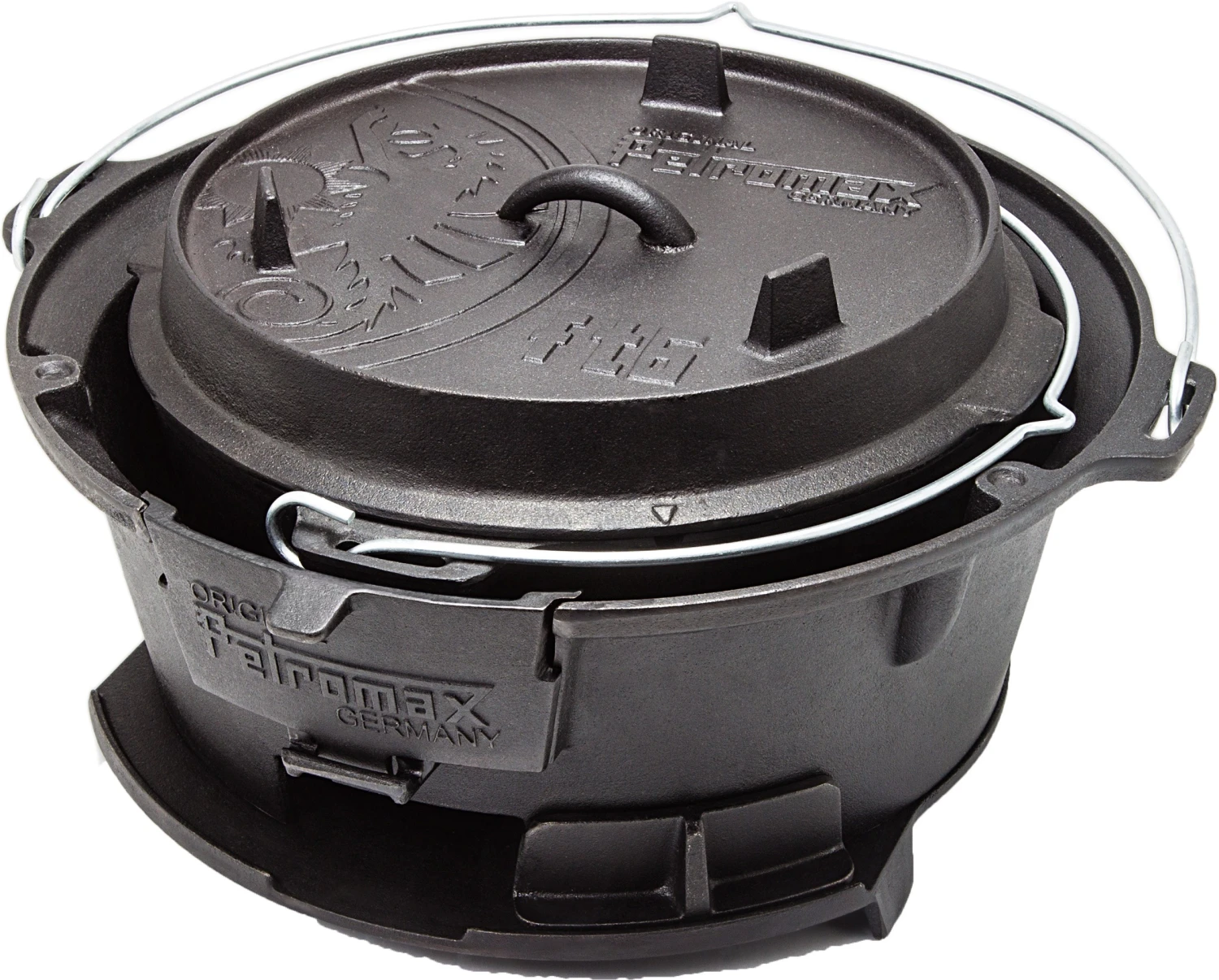 Den højdejusterbare grillplade, de store og regulerbare lufttilførsler og det praktisk bærehåndtag gør den anvendelig både som grill til grøntsager, pølser og kød, men også som tilberedningssted for din Petromax Dutch Oven op til størrelse FT12.