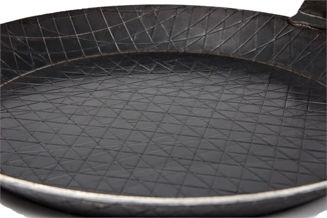 Wrought Iron Pan SP28, som har en diameter på den øverste kant på 28 cm, er en rigtig lækker smedejernspande, som med sin ypperlige varmefordeling er en fornøjelse at stege på. Smedejernet gør det muligt at bruge panden under ekstremt høje temperaturer, hvilket gør, at panden kan bruges på hvilken som helst ovn, komfur eller over åben ild.